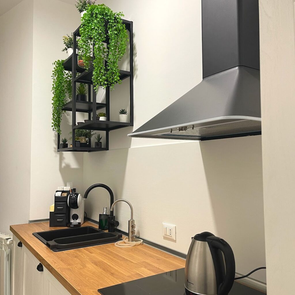 La nostra cucina è dotata di tutti i confort: utensili da cucina, stoviglie, forno, frigo, un piano ad induzione, un bollitore, un forno a microonde, un bollitore e una macchinetta dotata di capsule per il caffè, cappuccino, cioccolata, ginseng e quant’altro.